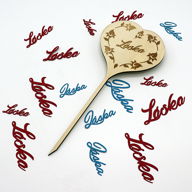 Nabízíme řezání a značení laserem. S jeho pomocí můžeme opracovávat a popisovat materiály (guma, plast, sklo, dřevo), případně odpalovat barvu z kovových materiálů. S pomocí přídavné pasty lze také popisovat nerez. Takto vyrábíme různé dřevěné výrobky, dle vaší specifikace, značíme reklamní předměty a vyrábíme razítka.